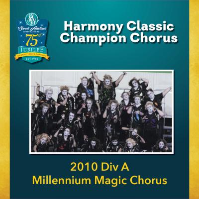 Presenting...The 2010 Sweet Adelines International Harmony Classic Division A Champion Millennium Magic Chorus from Manchester, Connecticut (USA), under their own direction.