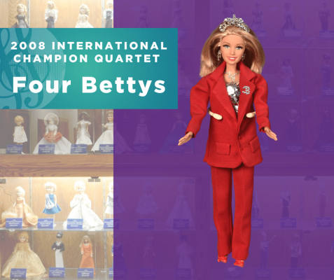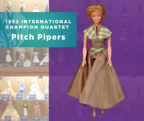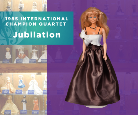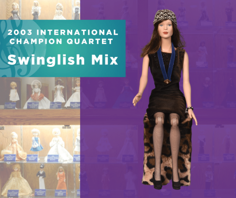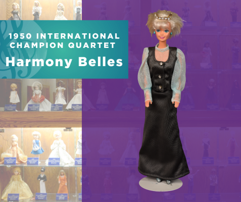 Each year's quartet champion is represented by a doll dressed in a handmade replica of the costume the singers wore on the international stage. The dolls are housed and lovingly cared for at Sweet Adelines International Headquarters in Tulsa, Oklahoma (USA) in the Hughes Gehrke Champion Showcase. We are very grateful for the generosity of Shelly Hughes and Mike Gehrke. Thanks to their philanthropic support, we are able to acknowledge the success of our quartets and choruses over the years in this special way.